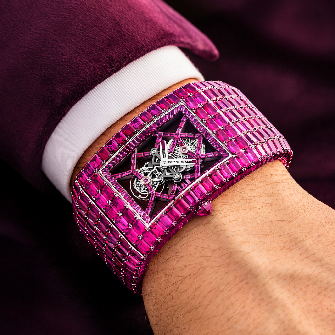 The Ruby Billionaire III by Jacob & Co. (around £3.9 million)This diamond watch is available in three bold executions: Emerald, ruby, and rainbow gem. It’s made of 18-carat white gold and set with 714 natural gemstones that total 147.65 carats. Usher wore the ruby-clad version to the Met Gala this year.