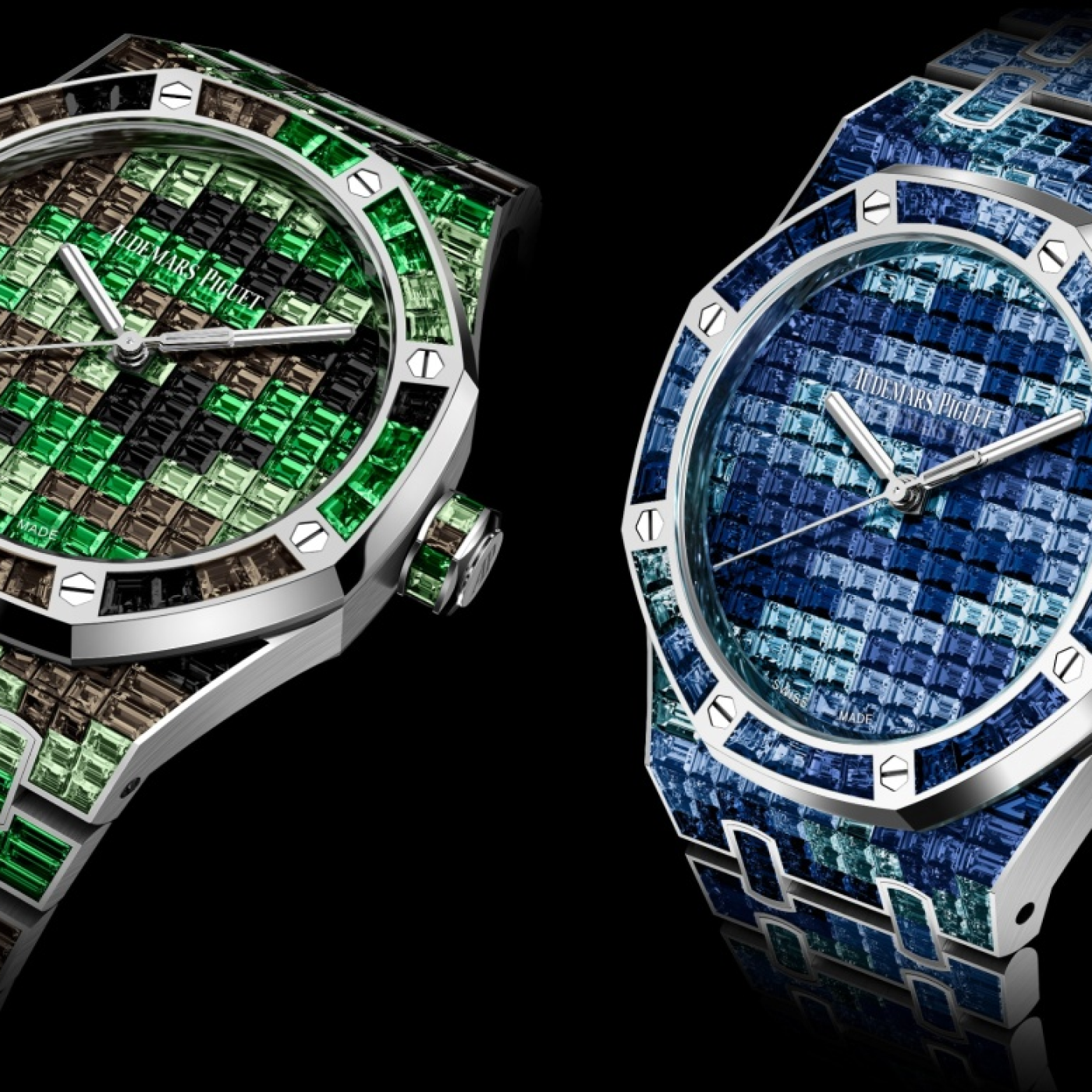 Audemars Piguet Royal Oak Selfwinding 41mm Full Gemset (around £1.1 million)What is undoubtedly one of AP’s most glamorous camo designs, this Royal Oak model is fully paved in gems. It’s adorned with 861 baguette-cut gemstones – but who’s counting? This one’s available in two camouflage-inspired versions: One consists of blue sapphire and Swiss blue topaz, while the other is made using black sapphire, tsavorites and smoky quartz.