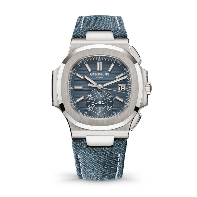 Patek Philippe’s incredible Nautilus needs no introduction. Sporting a white gold case & denim-patterned calfskin strap - this sports-line Patek combines the ultimate in luxury materials with a casual-wear strap.