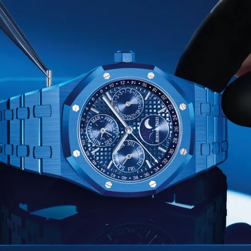 The blue ceramic Royal Oak feels more grown-up than you might expect. Its playful shade catches the eye of even the most devoted steel watch wearer - perfect to bring some colour into your day-to-day.