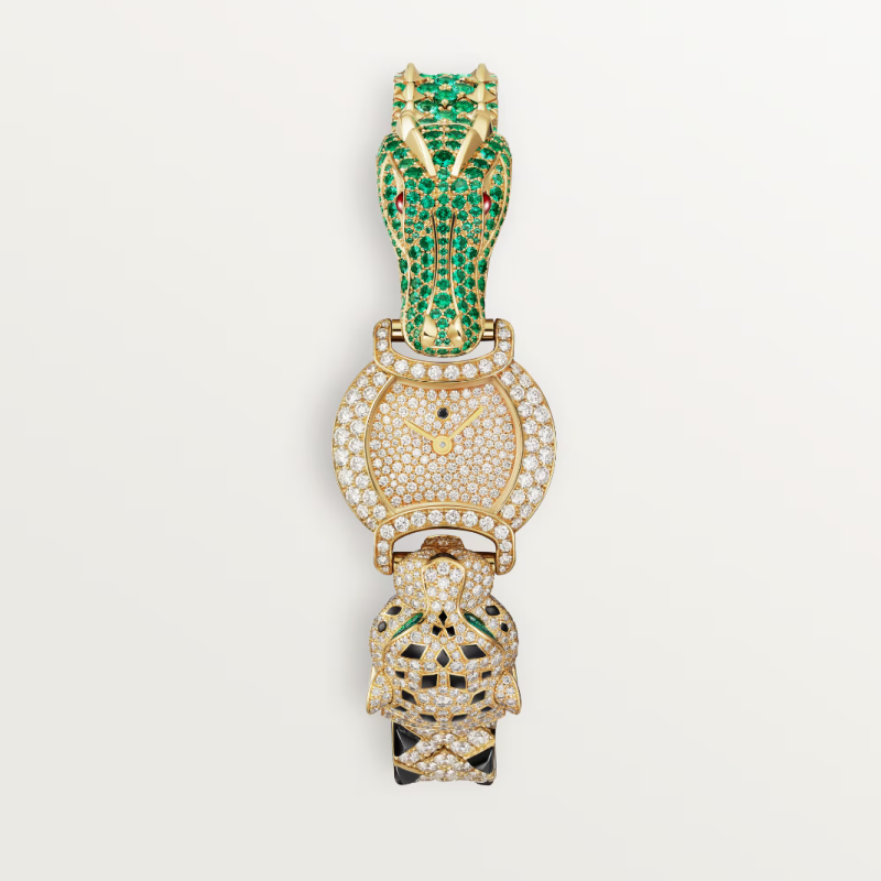 Cartier launched its crocodile motif watch as part of its animal collection. With an 18 ct gold case and 128 brilliant-cut diamonds, it merges luxury with playfulness in a way that’s rarely seen.