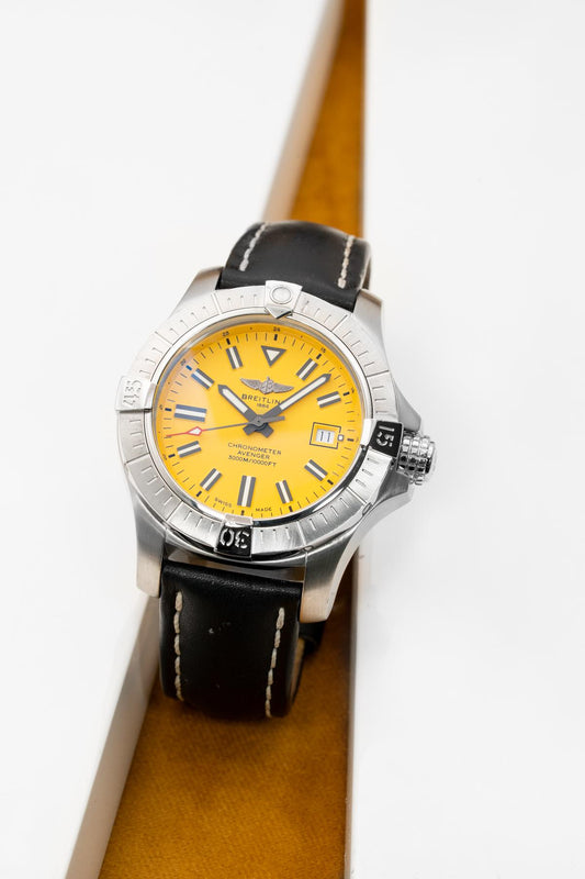 The spectrum is vast — you could pick up a Breitling Avenger Skyland at Trilogy Jewellers for as little as £2750, while other pre-owned Breitling watches take a much bigger chunk out of your bank account. Many models (especially those limited-edition pieces) ring in at hundreds of thousands of dollars.